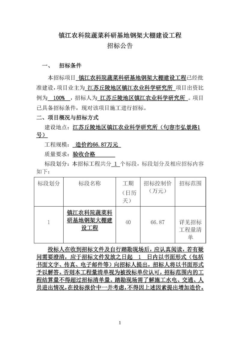 镇江农科院蔬菜科研基地钢架大棚建设工程