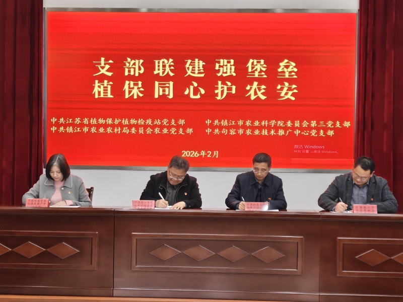为深入贯彻落实党建引领乡村振兴战略部署,推动植保工作提质增效,近日,我院第三党支部联合江苏省植保植检站党支部、镇江市农业农村局农业党支部、句容市农技推广中心党支部,共同开展以“支部联建强堡垒,植保同心护农安”为主题的支部联建共建活动。四方支部党员代表齐聚句容,通过实地观摩、座谈交流、协议签署等形式,凝聚党建合力,共商植保事业发展大计,切实将党的政治优势、组织优势转化为服务“三农”的发展优势。
