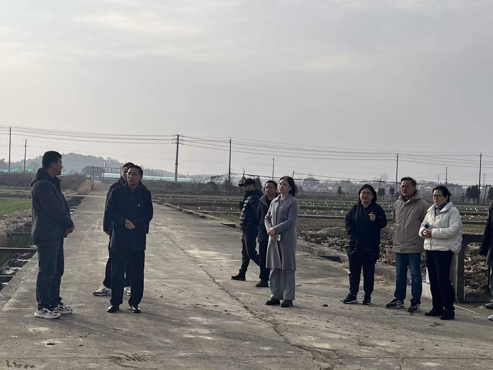 活动伊始,四方党员代表首先前往句容市国家现代农业产业园科创中心参观学习。在科创中心工作人员的引导下,大家先后参观了农业展示中心、大数据智慧中心、组培中心和句容丘陵山地农机装备研究院等核心区域。展厅内,智能农机装备、大数据智慧平台、优质农产品样品等,让党员们直观感受到现代农业科技为植保工作带来的革新与突破,纷纷围绕技术推广、成果转化等问题展开现场交流。随后,党员代表一行前往我院农业农村部作物栽培与植物保护现代农业科技试验示范基地进行实地考察。基地主任张国详细介绍了基地在小麦、油菜重大病虫害绿色防控、抗逆增产、农药减量增效等方面的研究进展和技术示范推广情况,重点讲解了小麦病虫害综合防控及油菜种子复合丸化包衣抗逆增产方案。党员们深入田间地头,仔细查看麦苗及油菜生长状况和病虫草害发生情况,现场交流了植保工作中遇到的难点问题及解决思路,实现了“田间课堂”实地研学的良好效果。