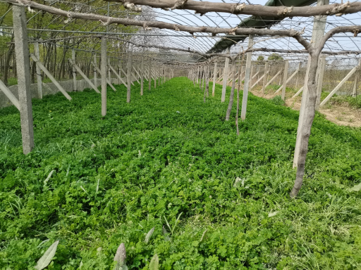 桃、梨园可以种植三叶草、紫云英、苕子、苜蓿、黑麦草、鼠茅草等,桃、梨园种植绿肥与葡萄园略有差别,首先要用旋耕机对果树行间进行旋耕,深度比葡萄园要略深,播种后要及时盖种,播种时要看天气预报,最好在下雨前播种,因为桃、梨园一般是露天,浇水比较困难,要保证土壤墒情确保出苗。