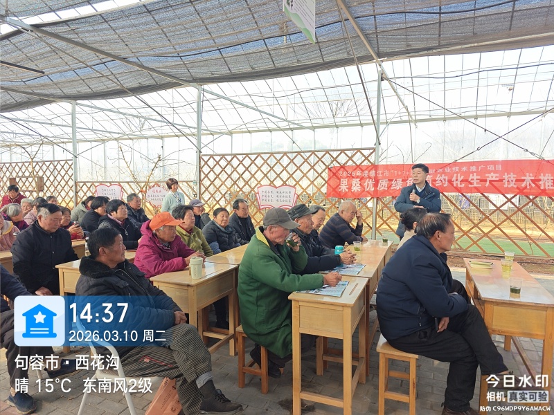 为更好的实施2025年度镇江市1+1+N项目“果桑优质绿色简约化生产技术推广”,3月10日,由我院生态农业研究室组织的果桑优质绿色简约化生产技术培训及观摩会在句容市茅山镇丁家边紫玉桑椹专业合作社成功举办。本次培训聚焦果桑优质高效栽培、绿色防控及资源多元化利用等核心技术,项目参加人员、技术人员及种植户等50余人参加。