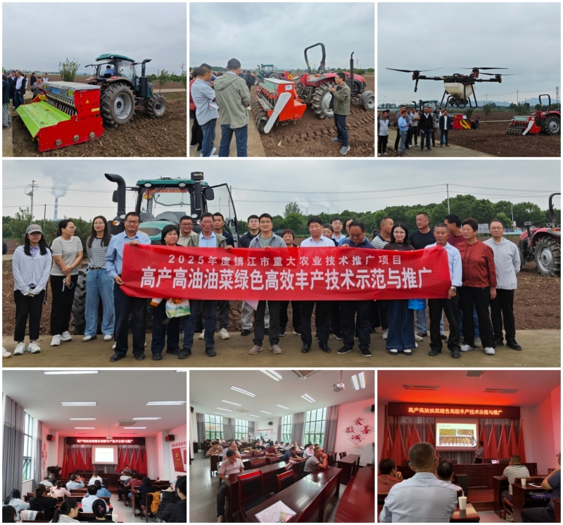 近日,为推进2025年度镇江市重大农业技术推广项目“高产高油油菜绿色高效丰产技术示范与推广”顺利实施,我院联合镇江市农业技术推广站在丹徒区世业镇卫星村组织开展高产高油油菜绿色高效丰产技术现场观摩与培训会,邀请扬州大学左青松教授和省农科院王红春研究员以“油菜单产提升技术路径”“油菜田杂草防除相关技术”为主题进行了授课,市农业农村局相关部门领导、项目团队成员以及各区农技推广人员、油菜种植大户等50余人参加活动。